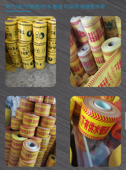 A 警示帶鋪設施工方便,施工與埋管同時進行,埋覆與地下與管線中間,鋪設在管道上面30-50cm...